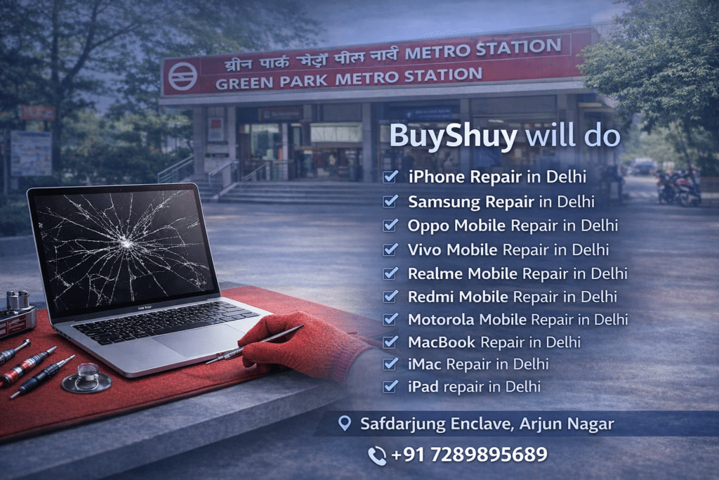 If you are looking for MacBook screen repair near Green Park or facing issues like MacBook battery repair, keyboard repair, charging problems, or logic board issues, you can visit or contact BuyShuy, a trusted electronics and repair service provider in South Delhi.
