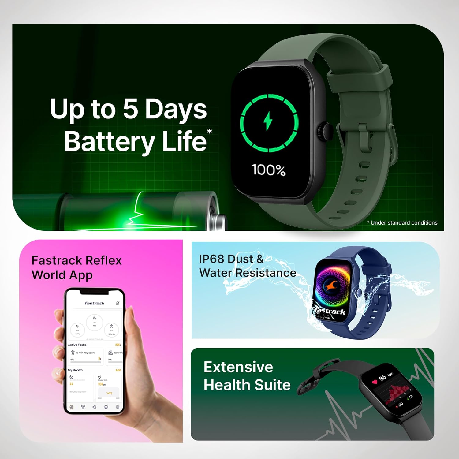 • NameFastrack Smartwatch Reflex Horizon with 4.17 cm UltraVU Display Built-in Alexa with 100 Plus Sports Modes With Black Strap