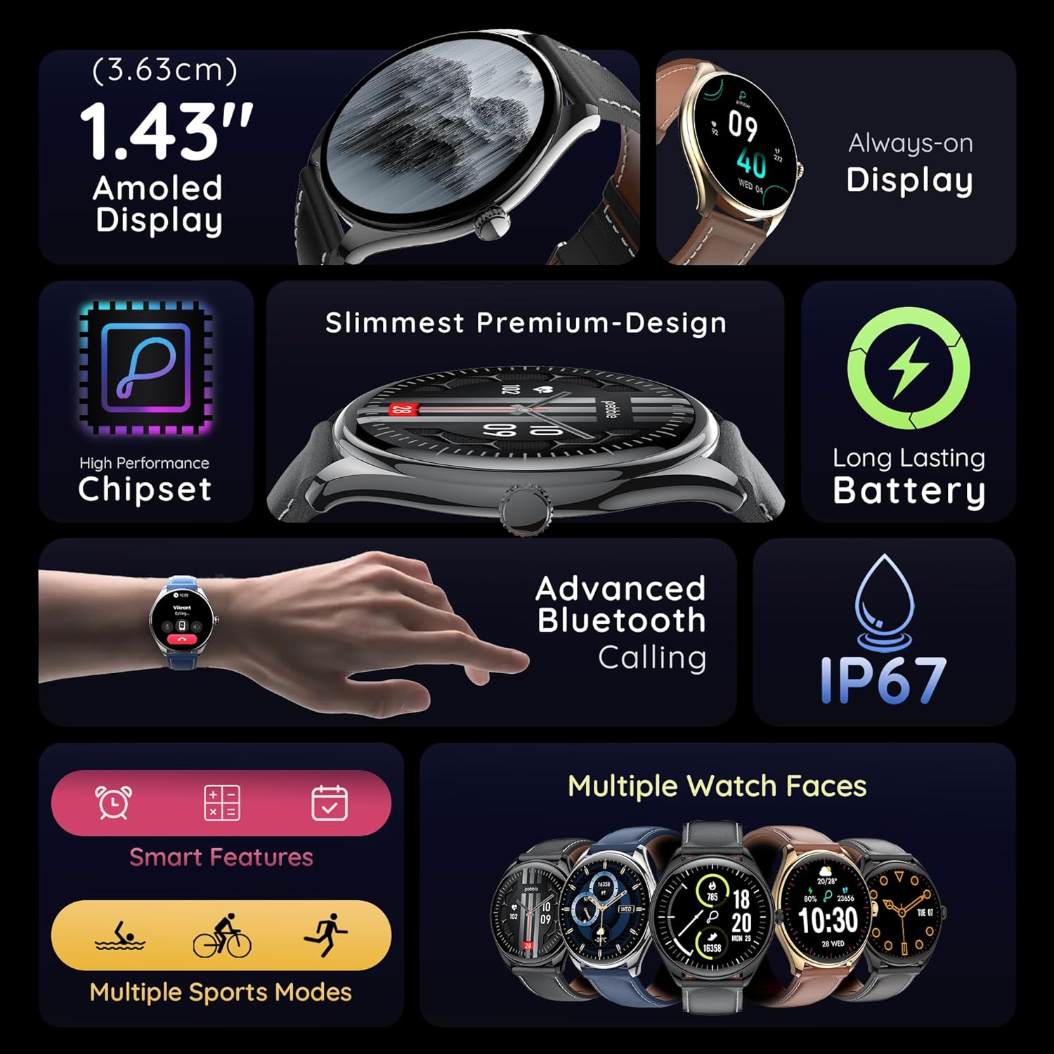 • 1.43″ AMOLED Display – Ultra-clear visuals with vibrant colors and sharp contrast.