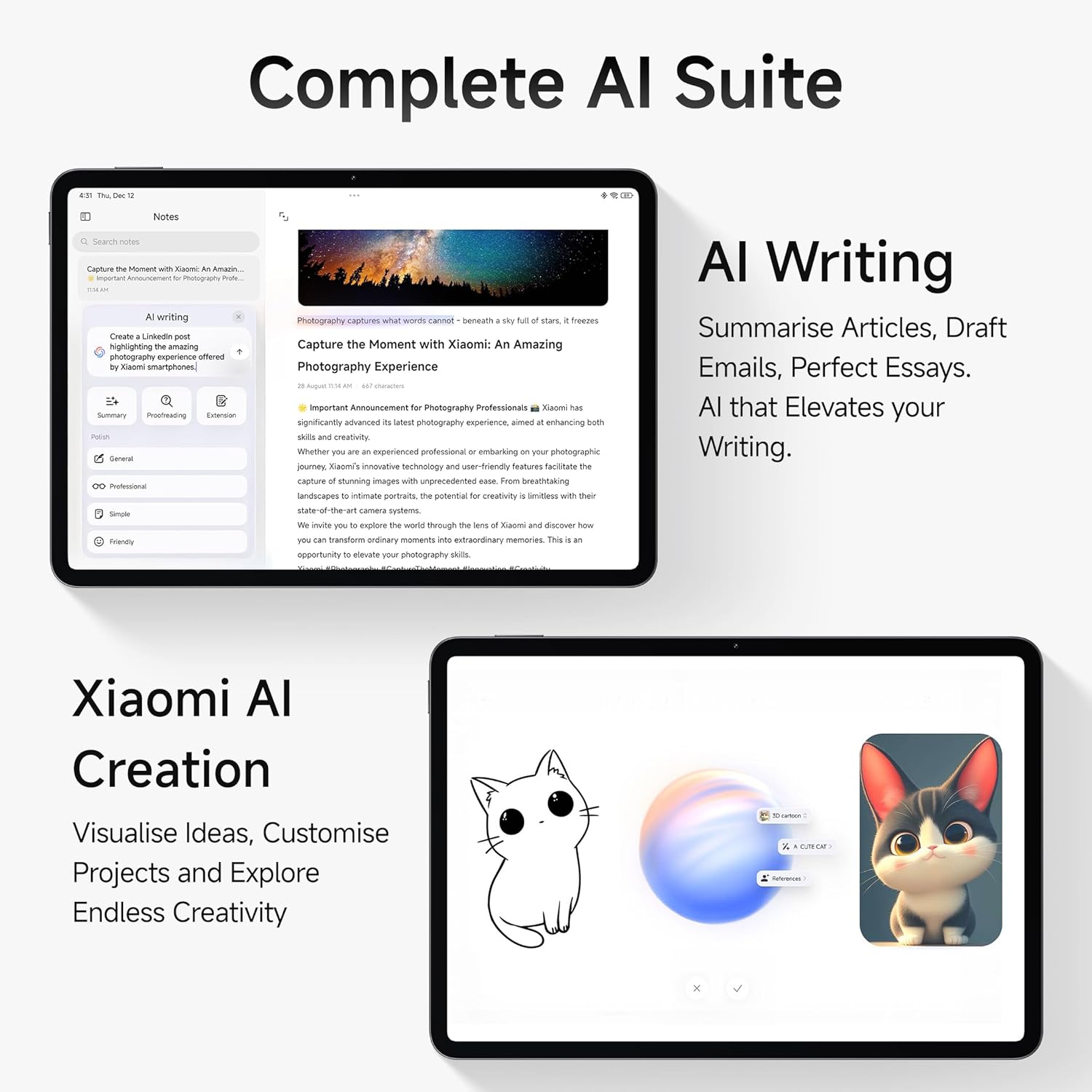 • Most Advanved Snapdragon 7 Series Processor – Power through tasks with the Snapdragon 7+ Gen 3, offering upto 2x better performance for smoother multitasking and gaming. As the most advanced processor in the Snapdragon 7 series, it supports LPDDR5X memory and UFS 4.0 storage for lightning-fast data access.*as compared to previous gen xiaomi tablets